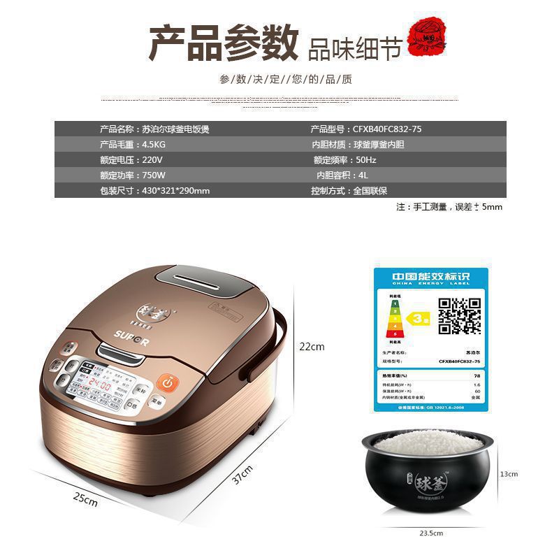 SUPOR/蘇泊爾 CFXB40FC832-75智能電飯煲電飯鍋3人-4人5-6人正品