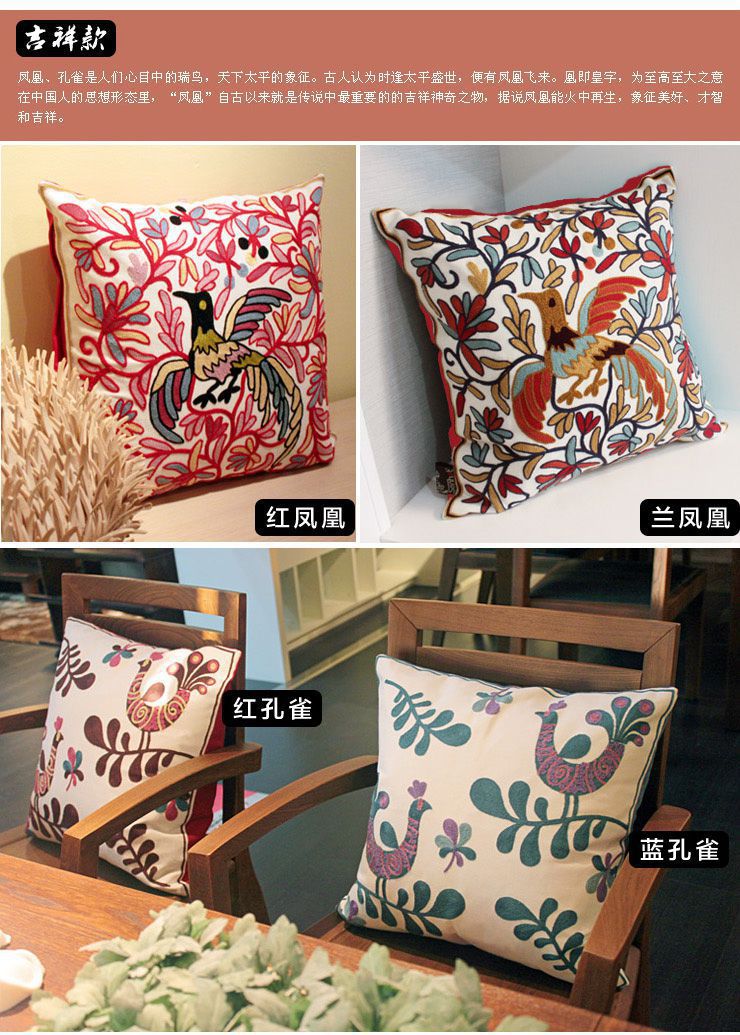 中國風(fēng) 田園刺繡吉祥喜慶圖案 居家沙發(fā) 靠墊時(shí)尚居家抱枕(含枕芯)